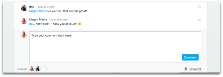 You can have conversations with clients and team members directly within Asana.